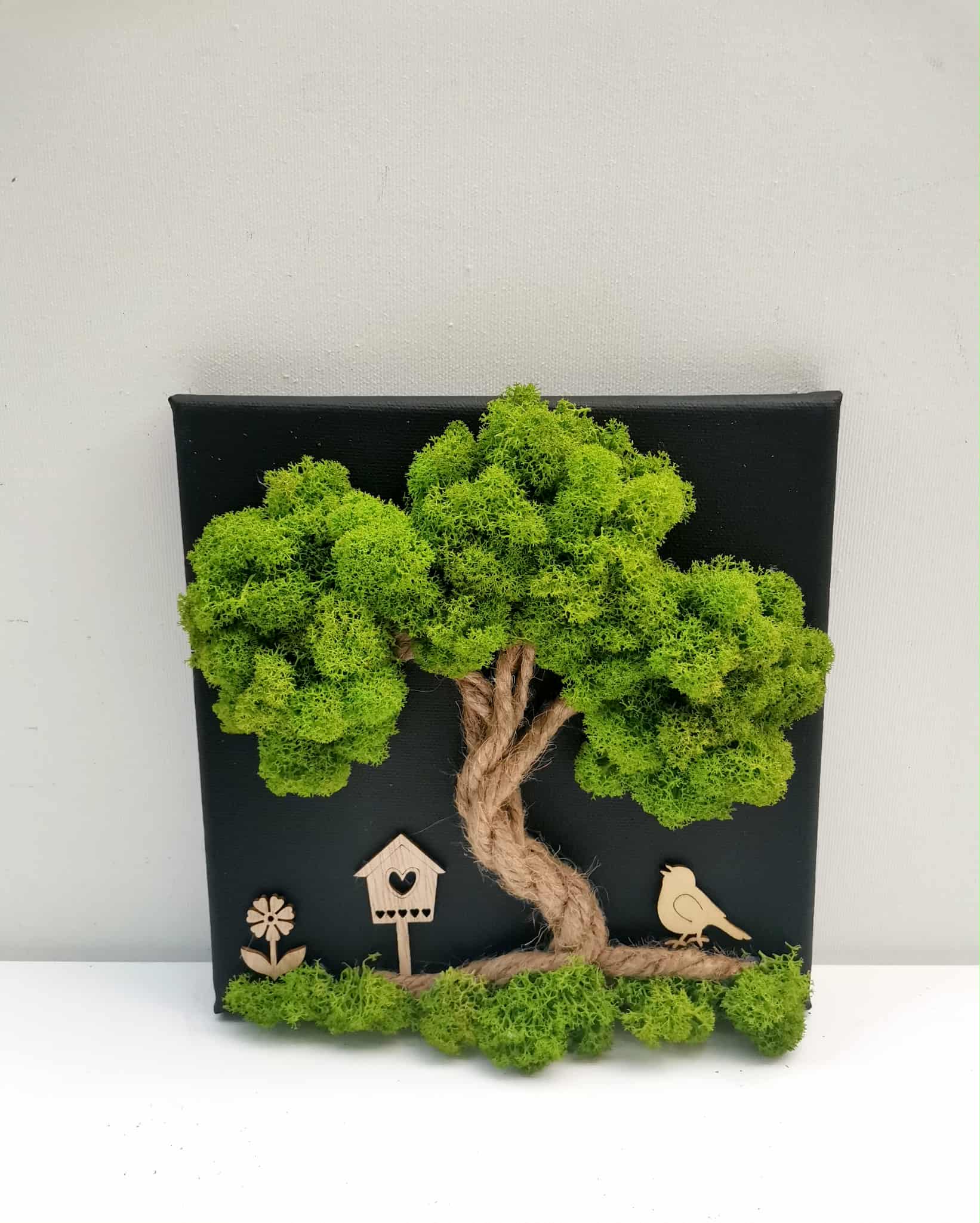 Sobí mech pochází z Finska nebo Norska, jedná se o živý mech, který se stabilizuje a obraz vydrží krásný i několik let.