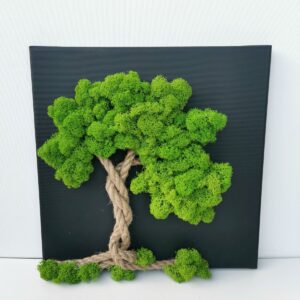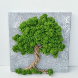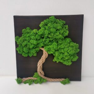 Krásná dekorativní miska z teakového dřeva je plněná stabilizovaným mechem.
